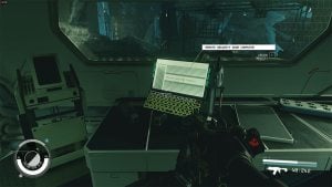 After fighting a few robots and Shardhoppers and traveling down an elevator shaft, you'll come across another Secure Access door. Follow the wire connected to the door up the ramp and into the control room. Defeat the robot dog and interact with the Remote Security Door Computer.