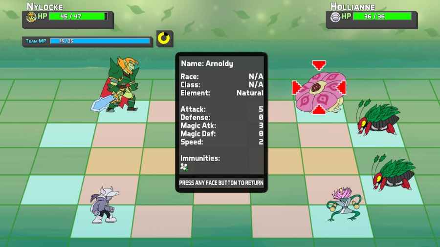This will launch a pop-up that details an enemy's name, race, class, and element. This information changes based on whether you are scanning a monster or another "player." The scan option also tells you the enemy's attack, defense, magic attack, magic defense, and speed. You can also find a list of immunities the enemy has.