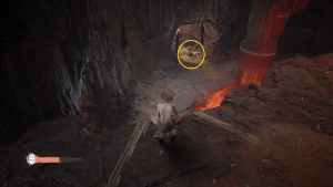 Use the ladder from the platform where you found the fifth tag and go to the lava area below. This lava area is tricky, and this is where you will find the remaining tags. Get down the ladder, and cross the stone bridge on the lava.