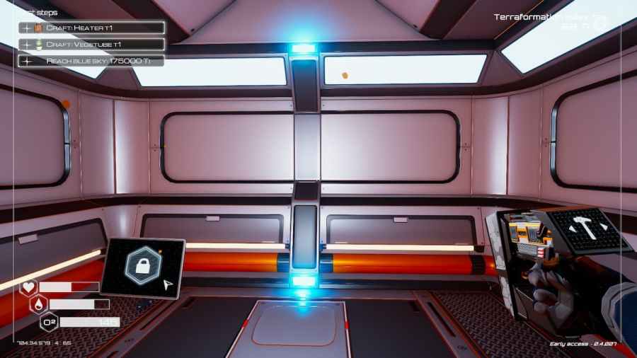 To get new blueprints in The Planet Crafter, you can either find them in blue containers scattered across the planet's surface or raise the levels of the planet via terraforming, heat, oxygen, and pressure. These are raised by completing tasks and building structures.