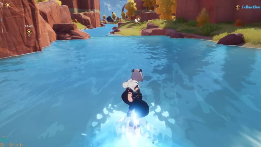 Be careful not to let go of your directional keys, or you'll fall into the water! Additionally, don't click on the dodge or dash buttons, as these will also unmount you from the Jetboard—and you'll need to wait for the cooldown to end to use it again.