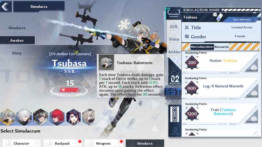 Simulacrum Traits are essential passive abilities in Tower of Fantasy that unlock once your Simulacra has hit increments of Awakening—there is only one trait per Simulacra. These two increments are at 1200 and 4000 Awakening Points for all Simulacra. Once 1200 has been reached, you will unlock the Simulacrums trait, and hitting 4000 will upgrade this trait.