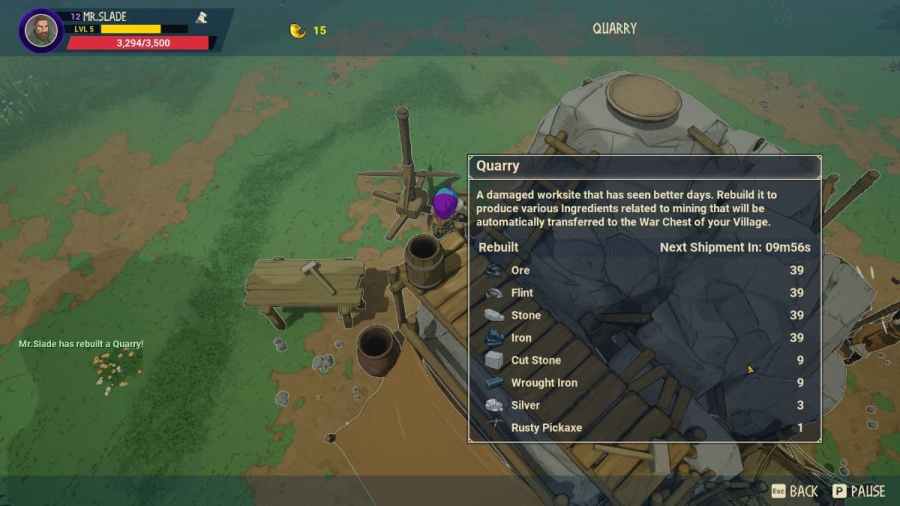 The quarry is one of three worksites that are in Tribes of Midgard, that when the player rebuilds, provides resource shipments every 10 minutes.