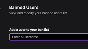 The Banned Users list is also in the Moderation settings and will display every banned user as well as the person that banned them. Broadcasters can also add more people to the list or unban people from this list by clicking on the trash can icon.