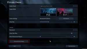 We recommend hosting a Private Game as it is the easiest out of the options available. Selecting Private Game will take you to the page shown in the image below, filled with several server options. We recommend looking through these server options and setting them according to your taste and play preference.