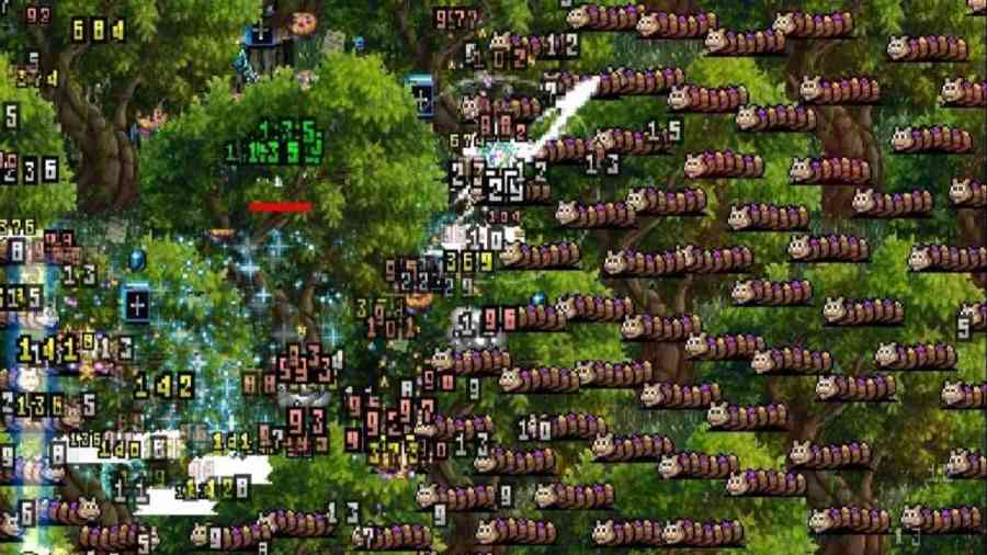 At some point, you'll be able to take a hidden path through the trees, where you'll notice hundreds of Sammy the Caterpillar enemies begin to spawn. Simply stay here and let your character do the work until you kill 6,000 of them. There's no tracker that tells you when you've hit it, so take note of the number of enemy kills you have before you start so you know when it's done.