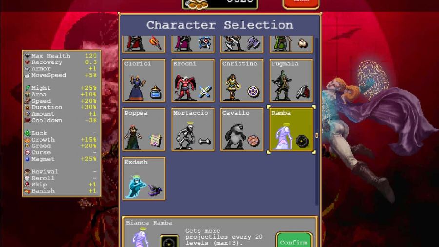 In a surprise stealth update to Vampire Survivors on March 5 several new characters and features were introduced. One of these was Bianca Ramba, a geriatric appearing survivor that starts with a very unique weapon inspired by the stage they’re unlocked on. But how do you unlock Bianca Ramba in Vampire Survivors?