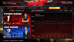 Ratings also heavily depend on the quality of your show. To improve the quality of a show, players need to purchase the best Logistics options available. Most Arenas, Crew, Special Effects, and Advertisement options will unlock within the first 12 weeks of MyGM. You will also get special bonuses for hosting higher-level Rivalries matches with specific Logistics options.
